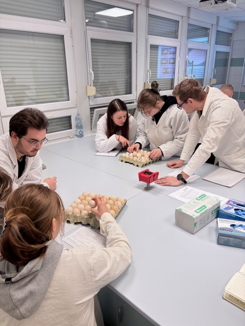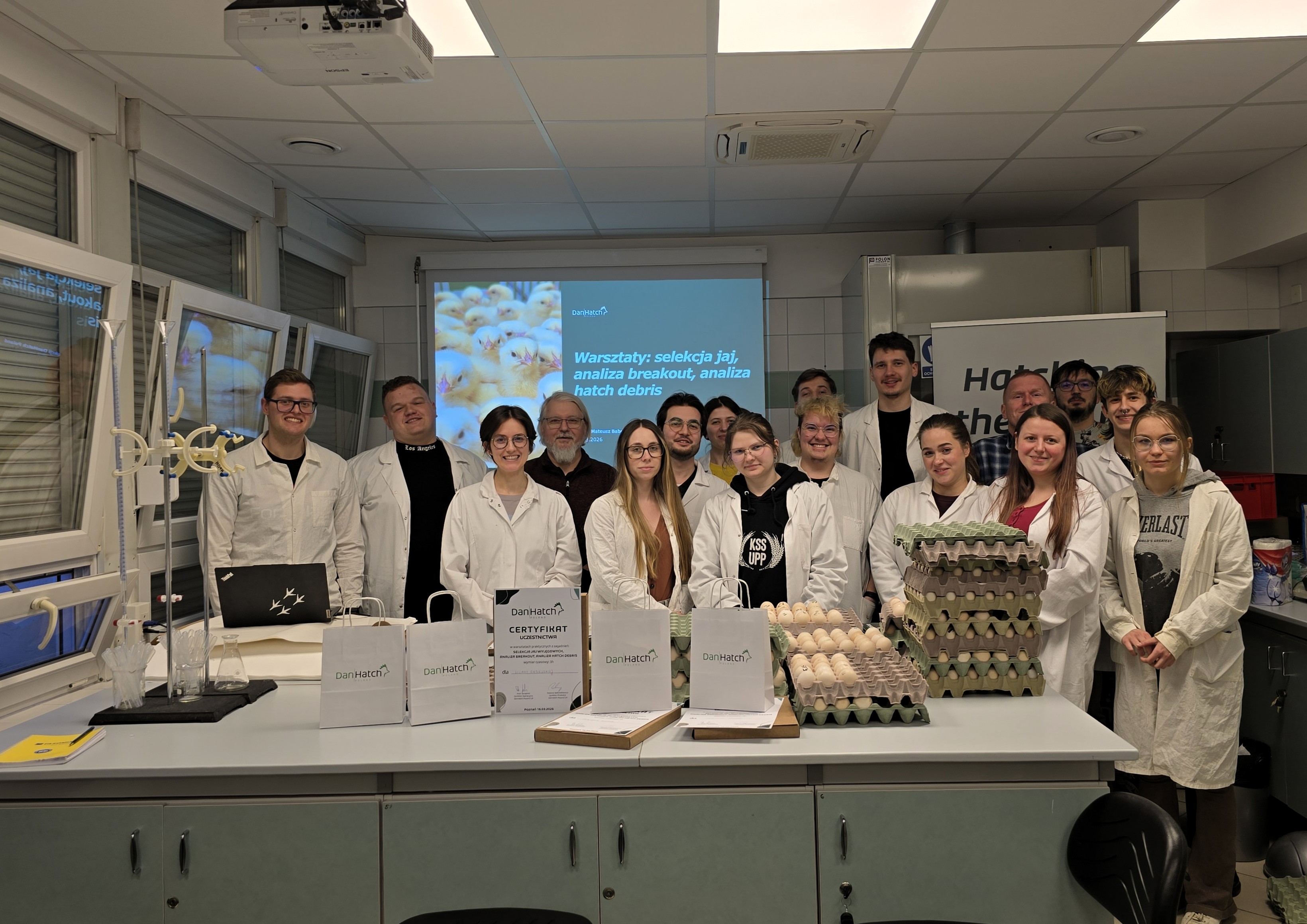 Studenckie Koło Naukowe Zootechników i Biologów, we współpracy z firmą DanHatch Poland, zorganizowało szkolenie z zakresu wieloaspektowej analizy jakościowej jaj wylęgowych stad reprodukcyjnych kurcząt rzeźnych. Warsztaty stanowiły doskonałą okazję do poszerzenia wiedzy oraz rozwijania umiejętności praktycznych, a także zapoznania się z aktualnymi rozwiązaniami stosowanymi w branży drobiarskiej.